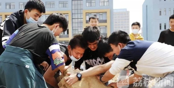 “嚯,你们看,我挖出‘人参’了!”镜头下,这位同学正在跟同伴炫耀自己的劳动成果。