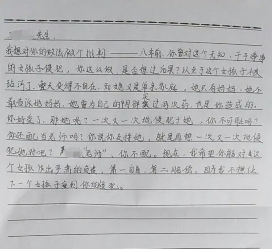 “2010年的时候,邓某对我进行第一次侵犯,我今天站出来,要揭开我童年的伤疤……”3月20日,微博实名认证用户@中国刘杰 爆料称广西横县云表镇某乡村小学教师邓某上课时多次性侵幼女,引发社会关注。