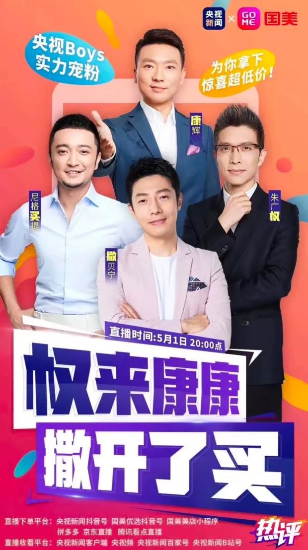 “美好生活就在前方”,央视新闻携手国美“五一”“放大价”。康辉、撒贝宁、朱广权、尼格买提超强合体,实力宠粉,为全国消费者带货拿下超低价!“权来康康,撒开了买”,接地气,有人气。