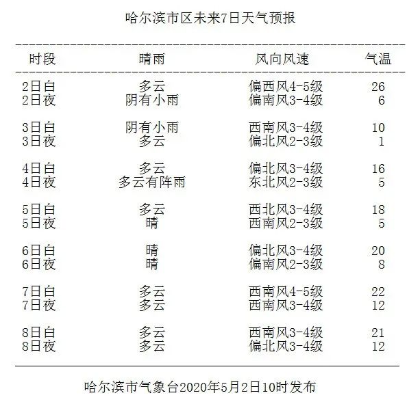 哈尔滨市气象台5月2日12:20发布寒潮蓝色预警信号: