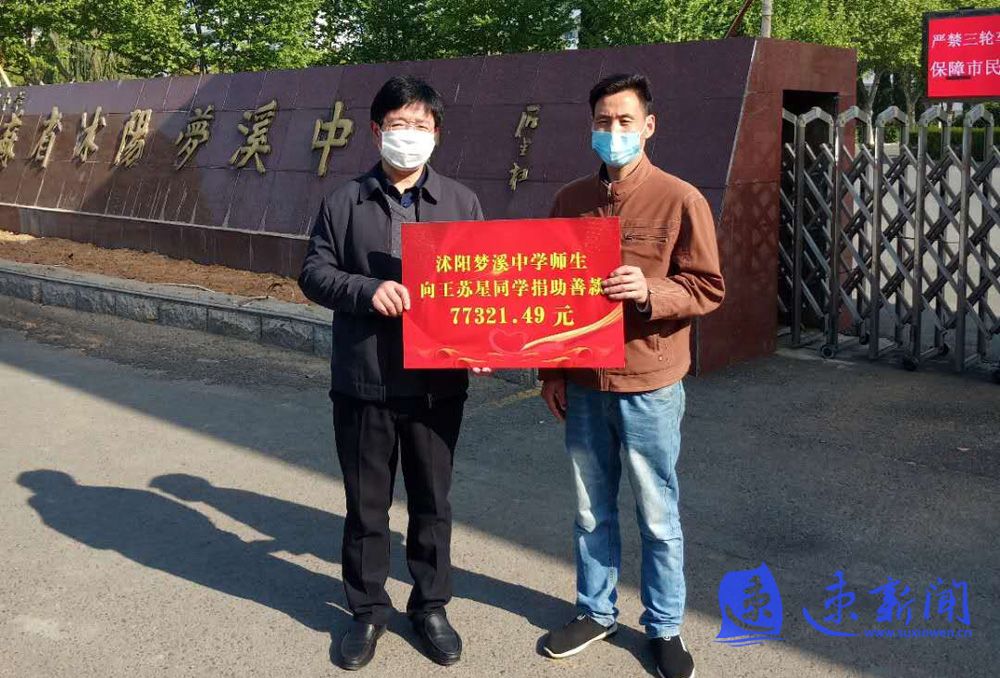 相信爱可以战胜一切。“王苏星同学是一个品学兼优的学生,面对这样的不幸,我们非常痛心,立即在全校范围内发起捐款的倡议。”沭阳梦溪中学校长郇兆鹏说,几天时间里,全校师生一共募集到77321.49元善款,大家都希望王苏星能够早日康复。