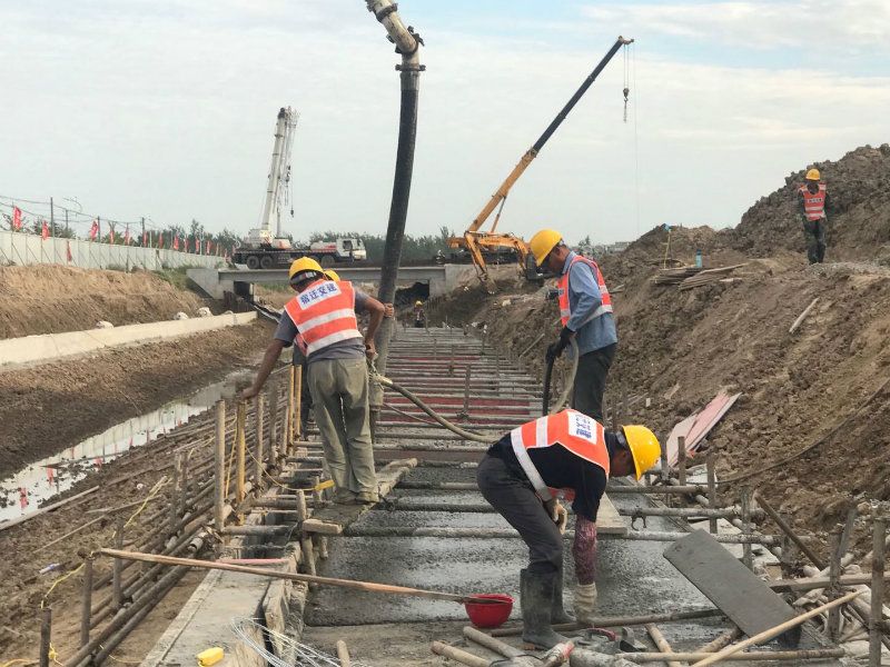 “右边这条150米长的挡墙要在5月10日前浇筑完毕。”江苏宿迁交通工程建设有限公司(以下简称“宿迁交建”)宿迁高铁商务区项目部副经理王同江介绍道。