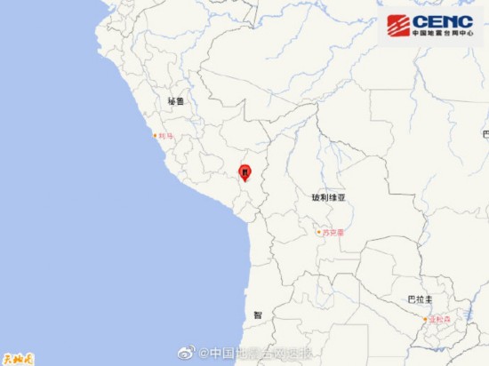 中国地震台网正式测定:05月03日08时44分在秘鲁(南纬15.50度,西经70.50度)发生5.4级地震,震源深度180千米。