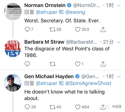 留言二:我想作为一个堪萨斯人道歉(蓬佩奥来自堪萨斯州),但我们真的从来不想要这样的笨蛋。