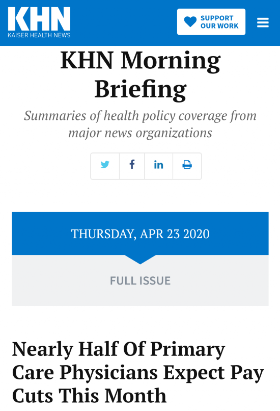 △美国医疗新闻网站KHN报道,近一半主要医疗工作者将遭减薪