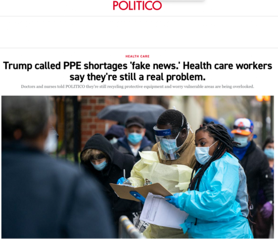 △POLITICO报道,医护人员称防护用品短缺现象仍然存在