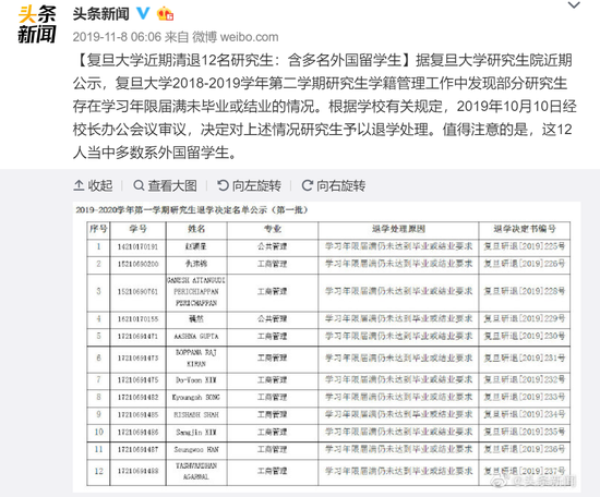 去年11月,复旦也曾清退过一批研究生: