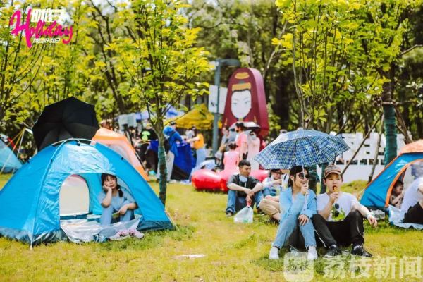 在被玫瑰花包围的大草坪上,记者看到,有的游客自己动手扎个帐篷、组装桌椅,很快“安营扎寨”,再烧水来制作一杯手冲的香浓咖啡,沉浸在玫瑰花沁人心脾的芳香里,一旁的孩子们嬉戏玩乐、享受童年时光。灵韵山水间一顶顶彩色帐篷格外吸睛,100多位听友的自然景色中怡然自乐、放松心情。