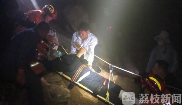 5月2日晚7点多,连云港市东海县消防救援大队接到群众报警称,东海县温泉镇羽山上,一名中年男子不慎摔伤无法下山,请求救助。