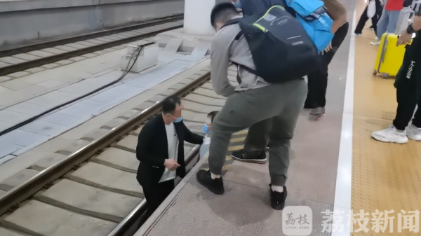 5月2日晚7时,一对情侣来到南京南站站台候车,因为一些琐事女子和男朋友发生了激烈争吵。7点02分,气急败坏的女子突然冲到站台边一跃而下跳下了站台,嘴里大喊着:“我不活了,我现在就死给你看,你就满意了吧!”男子被女友突如其来的举动吓懵了,楞了一两秒钟赶紧大声呼救。此时距离下趟进站的高铁列车仅剩3分钟,情况十分危急。 站台工作人员立即报警,跳下站台,在周边旅客、男子的共同配合下,将女子拉上了站台。随后南京南站派出所民警赶到现场,将二人带至南京南站派出所进一步调查处理。
