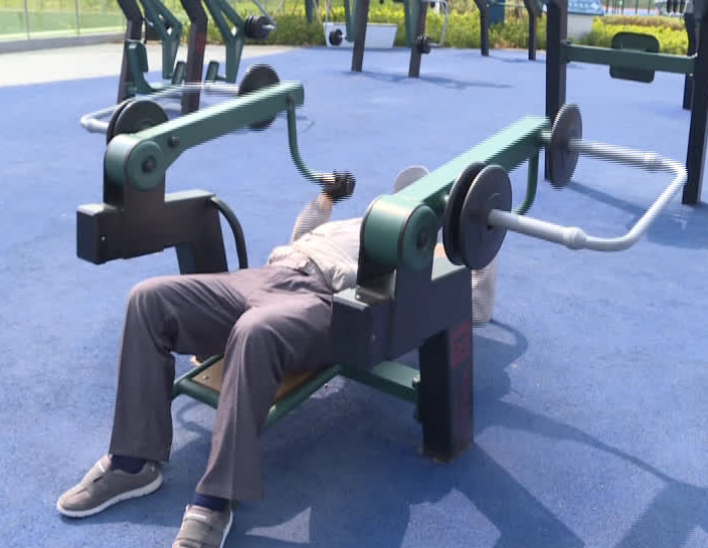 上午9点,在体育公园二层的力量训练区,65岁贺师傅刚刚做完一组训练。贺先生告诉记者,他住在健康路附近,得知体育公园开始试运营,立刻约了朋友一起来锻炼。