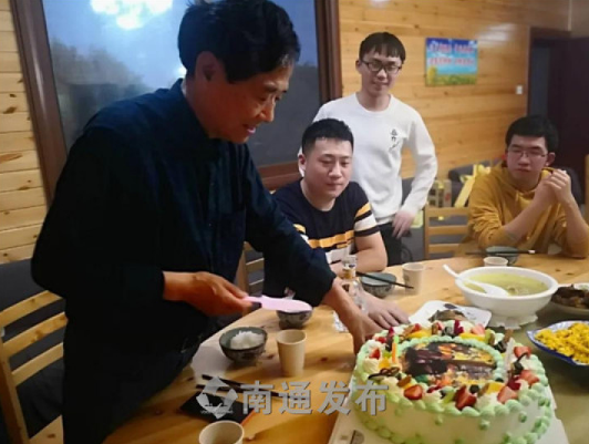 5月2日晚,三名年轻人背着郭中良悄悄地买了一个蛋糕,因为当天是他的生日,郭中良没有说,但孩子们却记在了心里,一个小小的蛋糕,简单却饱含了孩子们的深情。