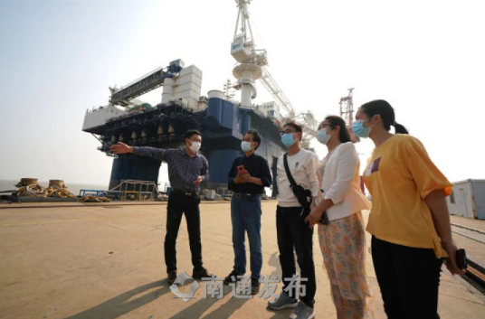 5月2日,在启东中远海运海洋有限公司码头,79岁的郭中良正带着3名年轻人参观学习。这是一家中国海洋工程装备制造业的领军企业,世界最先进的钻井平台震撼了这些来自大山深处的年轻人。