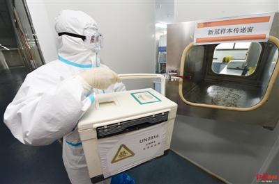 工作人员转运样本