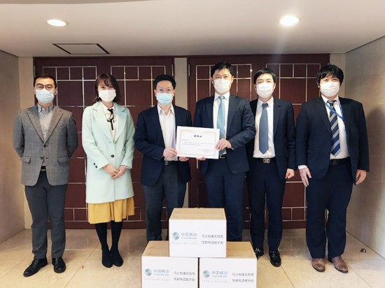 中国移动国际有限公司日本子公司筹集1800只口罩驰援中国疫区抗疫。(图片来源:中国移动)