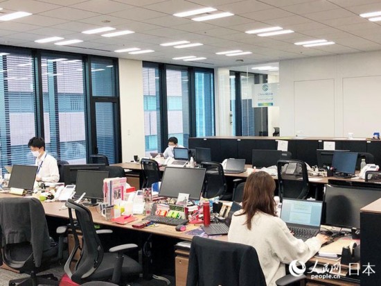 疫情期间,中国移动国际有限公司日本子公司员工实施错峰轮班制上班,并保证工位间1米以上距离。(图片来源:中国移动)