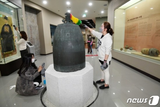 5月5日,为迎接“生活防疫期”,工作人员清扫韩国水原博物馆。(news 1)