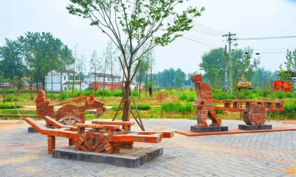郝桥村位于卢集镇东北4公里,依据卢集镇总体规划并结合郝桥村实际情况,确立“生态、宜居”定位,大力发展梨果及高效农业,结合红砖元素开展家园环境整治,利用园路、板车雕塑、山墙及景墙设计等,强化苏北红砖记忆,通过土地综合整治、环境整治、生态修复等措施,彰显自然淳朴的田园风光,实现“山水田林人居”和谐共生。
