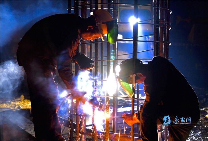 5月2日晚上8点,在市上海路(高铁站连接线)改造工程二期建设工地上,中交二公局工人正在加班加点紧张施工中。