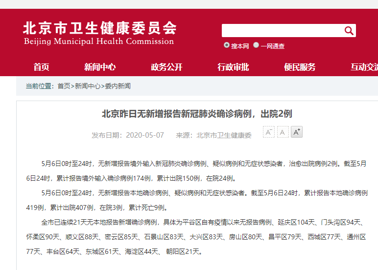 全市已连续21天无本地报告新增确诊病例,具体为平谷区自有疫情以来无报告病例、延庆区104天、门头沟区94天、怀柔区90天、顺义区88天、密云区85天、石景山区83天、大兴区83天、房山区80天、昌平区79天、西城区77天、通州区77天、丰台区64天、东城区61天、海淀区44天、 朝阳区21天。