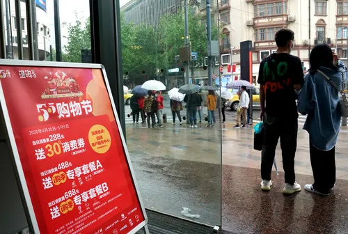 这个假期,商场、超市等人流明显增加,各大电商平台用“线上抢券线下花”的模式引流,实体消费逐渐恢复。