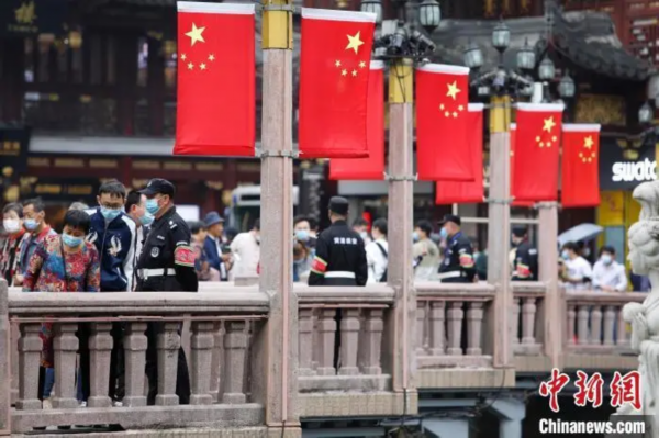 游客在上海豫园商城九曲桥上游玩。殷立勤 摄