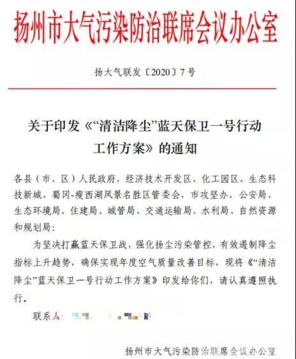 “堆土场地面没有湿化、渣土车进出不冲洗、渣土车上不覆盖;管道和工地施工现场没有任何覆盖和降尘措施,你们是哪家单位?请立即进行整改。”这是扬州市攻坚办检查人员随机上路对市区内各工地督查暗访时的现场。目前,为坚决打赢蓝天保卫战,强化扬尘污染管控,确保实现年度空气质量改善目标,扬州正式开展“清洁降尘”蓝天保卫一号行动。