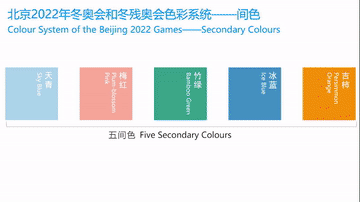 色彩的选择源于对三个赛区城市冬季色彩及春节文化色彩的调研,以及对自然四时、天地五方和二十四节气等中国传统文化的理解。既体现冰雪运动、绿色奥运和科技奥运的内涵,又呈现独特的中国文化魅力。