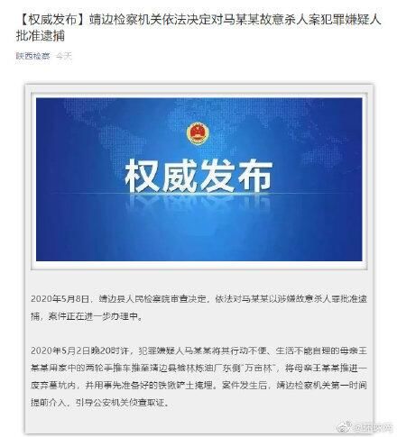 荔枝新闻讯 据靖边县人民检察院消息,2020年5月8日,靖边县人民检察院审查决定,依法对马某某以涉嫌故意杀人罪批准逮捕,案件正在进一步办理中。
