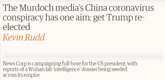 △《卫报》文章:默多克旗下新闻集团媒体的“病毒阴谋论”的唯一目的:帮助特朗普连任