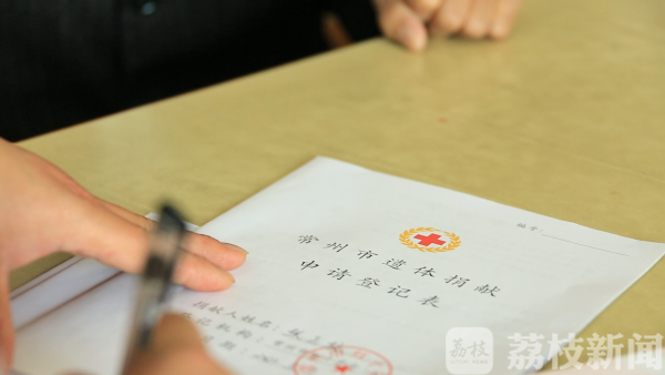 (张老先生在《常州市遗体捐献申请登记表》上签字)