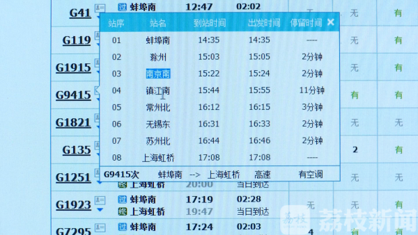 长三角铁路首趟“复学专列”G9415次,5月15日14点35分将从蚌埠南站始发,17点08分到达终点站上海虹桥站,中途停靠滁州、南京南、镇江南、常州北、无锡东、苏州北6个站点。铁路部门表示,这趟专列是由蚌埠当地申请办理,优先满足当地以及滁州复学返校学生,目前余票还比较多。而中途其他站的车票相对较少,比如南京南站,目前只剩下1张二等座车票在售,有需求的返校学生包括普通旅客都可以选择购买。