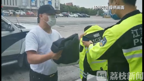5月8日上午,扬州交警在龙奔服务区执勤时,发现一辆白色小客车驾驶员神情可疑,便上前检查。