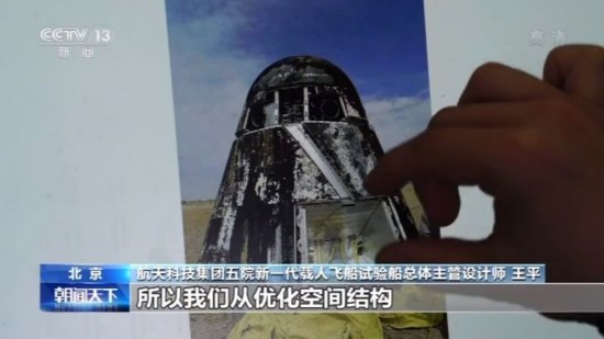 王平:(试验船)在发射之前整个涂的是白漆,它的颜色是白色的。那么经过高温的一个烧蚀的过程,很多地方都烧黑了。那么整个的气流的冲刷的情况来看,跟我们设计的情况是基本相符的。