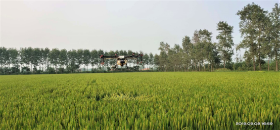 △去年,孙建用无人植保机帮农户水稻施药