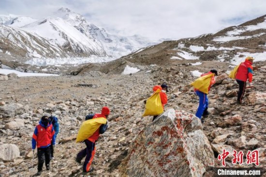 中新网西藏定日5月11日电 (何蓬磊 张伟)西藏自治区体育局、中国登山协会11日在珠峰大本营举行2020年春季登山垃圾清理回收仪式。