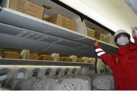 全日空公司也从3月份开始运行专门运货的航班,其中一架波音787飞机的183个座椅被铺上塑料布后放置货物,还用安全带进行固定。通过灵活利用客舱运货,该航班的运输能力比只使用货仓时提高了1.4倍。