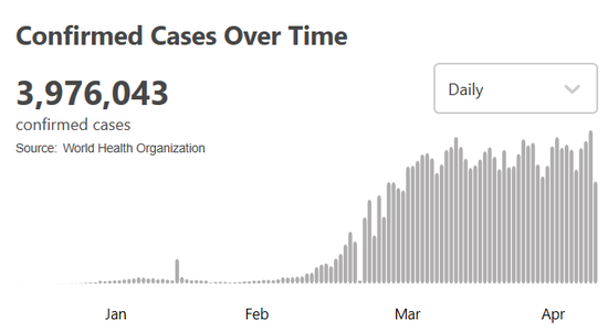 根据世卫组织最新实时统计数据,截至欧洲中部夏令时间5月11日9时27分(北京时间5月11日15时27分),全球确诊新冠肺炎3976043例,死亡277708例,中国以外超过389万例。(总台记者 朱赫)