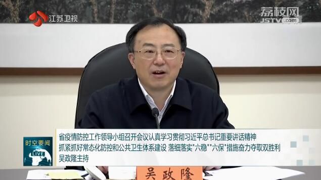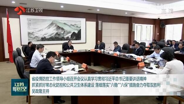 5月11日,省长吴政隆主持召开省疫情防控工作领导小组会议,认真学习贯彻习近平总书记在中央政治局常务委员会会议和党外人士座谈会上的重要讲话精神,听取疫情常态化防控和应急预案完善等情况汇报,根据省委、省政府部署,分析研判形势,抓紧抓好、落细落实常态化防控、公共卫生体系建设和"六稳""六保"等措施。
