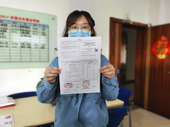 工作人员展示首份自助打印的输印尼原产地证书。徐丹 摄