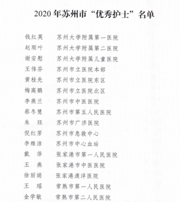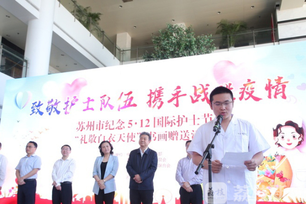 活动现场,苏州市卫生健康委还宣布了2020年苏州市“优秀护士”名单。苏州市副市长曹后灵向全市护士群体致以节日祝贺,表示崇高敬意。他表示,无论出征湖北还是留在苏州奋战的医护人员,都值得尊敬和学习。此次苏州艺术家们自发组织创作赞美讴歌白衣天使,他代表市政府表示衷心感谢。曹后灵号召全社会关心护士群体,善待医务工作者,共同为苏州更高水平的卫生健康事业添砖加瓦。