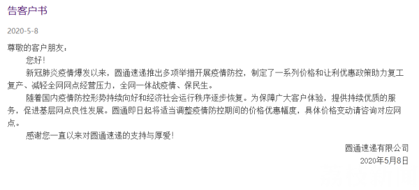 近日,“通达系”快递企业纷纷在官方发布公告,由于全国范围内的收费公路于5月6号零时恢复收费,导致快递行业运输成本上涨,将适当调整快递服务价格优惠幅度。江苏省的快递业具体涨价幅度是怎样的?广大快递用户能否接受这波涨价呢?