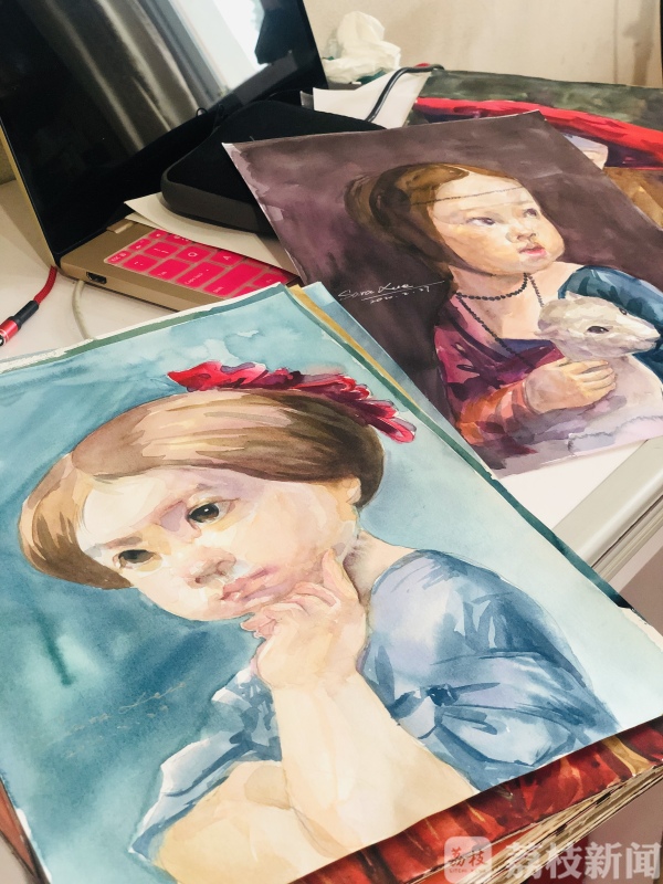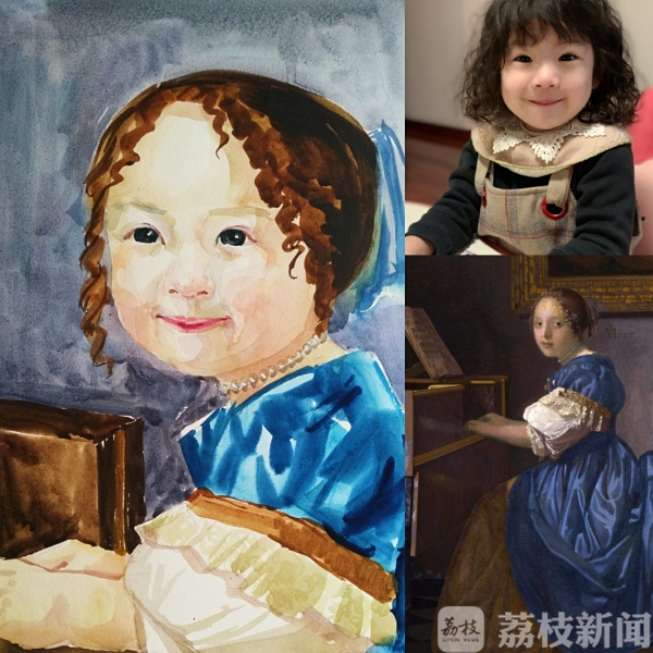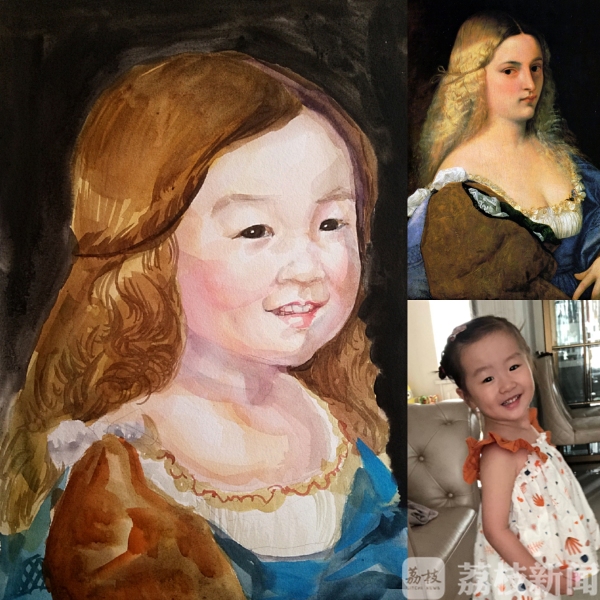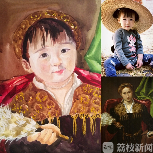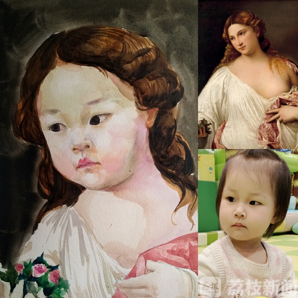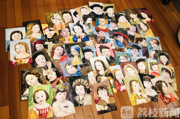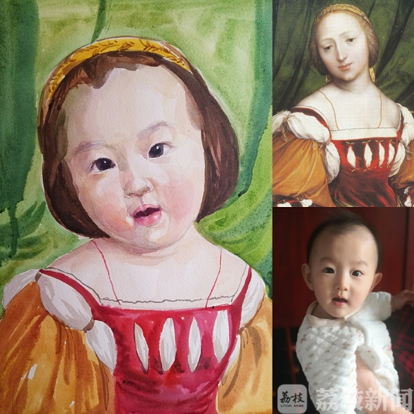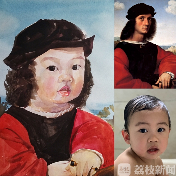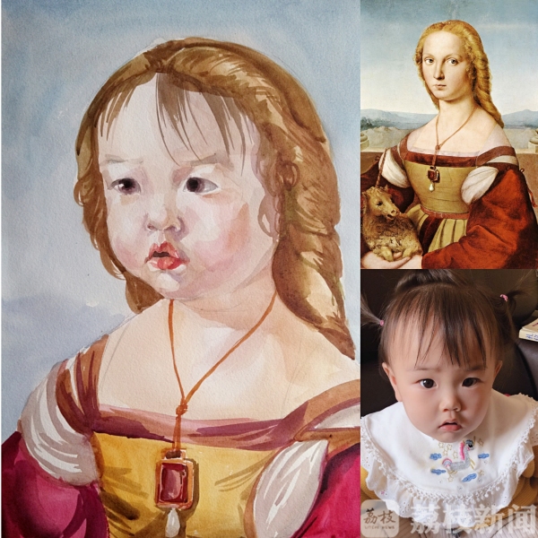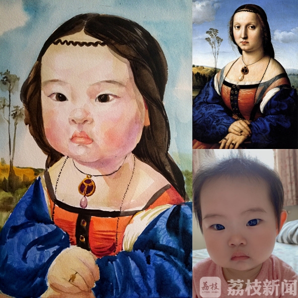 一双双睁得大大的好奇的眼睛,神态各异的表情,一时间,可爱的宝宝们就钻进了达·芬奇、米开朗基罗、拉斐尔的名画中,萌化人心。这些画作的作者薛宁是南京艺术学院设计学院的一名老师,也是一位85后“新手妈妈”,女儿曼曼刚满20个月。疫情期间,居家隔离让她有更多的时间陪伴女儿,她也时不时地给孩子画上一两幅肖像,记录下那些美好的瞬间。