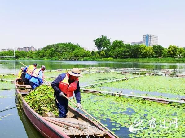 据说,每年河里都会有不同的水草植物要清理。目前,麦黄草已经被清理差不多了,荇菜正处于繁殖期。接下来,水葫芦、水花生也将进入生长期。秋冬时节,枯败的藕叶、芦苇等都要适当清理。