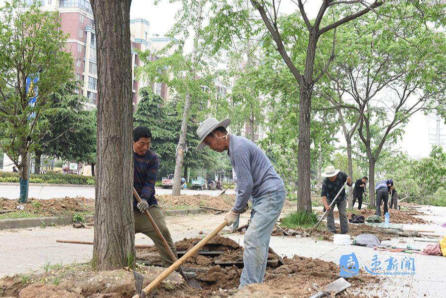 记者来到宿迁技师学院门前的十字路口处看到,向西方向的黄山路已经被绿色围挡封闭。通过围挡中间的小门走进施工现场,20余名工人正忙得热火朝天。他们有人拿着铁锹,有人挥动锄头,忙着将道路两旁的树木挖起。“移植树木是为道路正式施工做准备。”一名正在忙碌的工人告诉记者,树木移植要保留根部土球,才能保证树木运输过程中的养分供给。