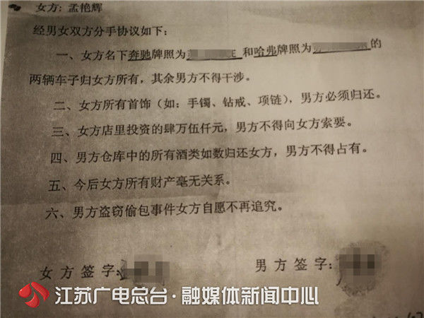 不料孟女士报了警。11月25日,双方签了一份分手协议,约定奔驰车归孟女士所有。