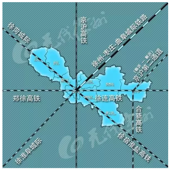 以上为规划新建的,加上徐宿淮盐铁路,城际铁路(时速200公里以上)共有5条。再加上京沪、郑徐、连徐三大高铁,徐州米字型枢纽就基本形成了。