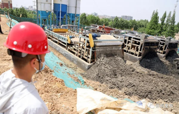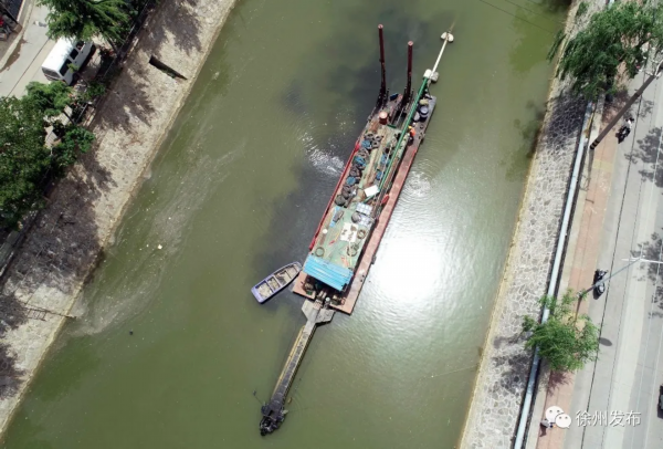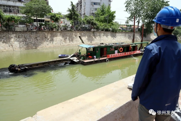 昨天上午,大徐在市区奎河水环境综合整治提升工程施工三标段看到:搅吸船正在将奎河里的泥浆等搅吸出来,通过管线源源不断送到沉降池中;