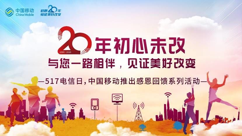 为感谢中国移动用户的选择与陪伴,中国移动将在5月17日开启“中国移动20周年感恩回馈系列活动”,把诚意满满的福利活动带给大家: