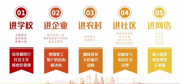 青年讲师团全省行活动以“绽放战疫青春·坚定制度自信”为主题,针对不同领域、不同行业和不同年龄阶段的青少年开展“五讲五进”宣讲活动。
